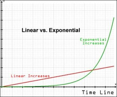 What this all leads to, is an exponential curve vs a linear curve. Many people experience frustration with fitness results because of beginning hard, then making fast gains, then tapering off increases and then results level off, or plateau.